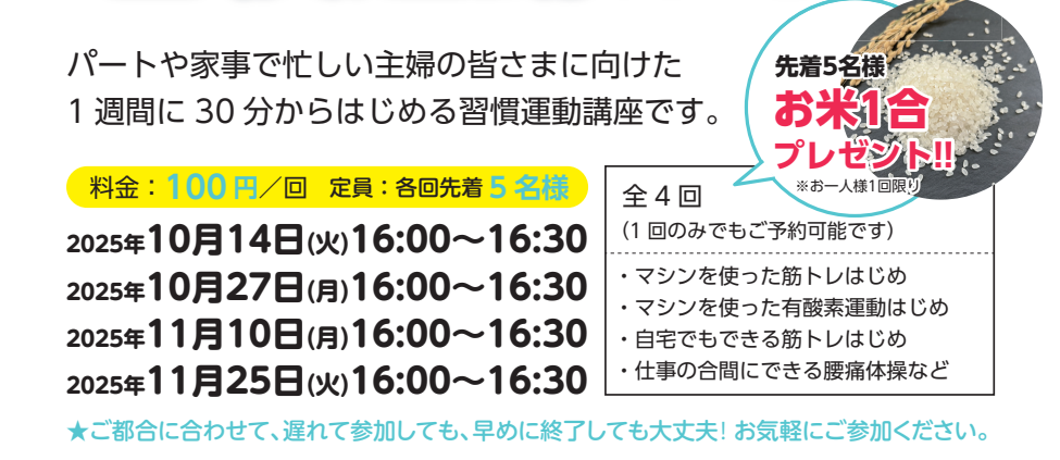 トレーニングマシンを使わずに、ご自宅などで初心者でも安全にはじめることができるトレーニングを紹介して、指導いたします。